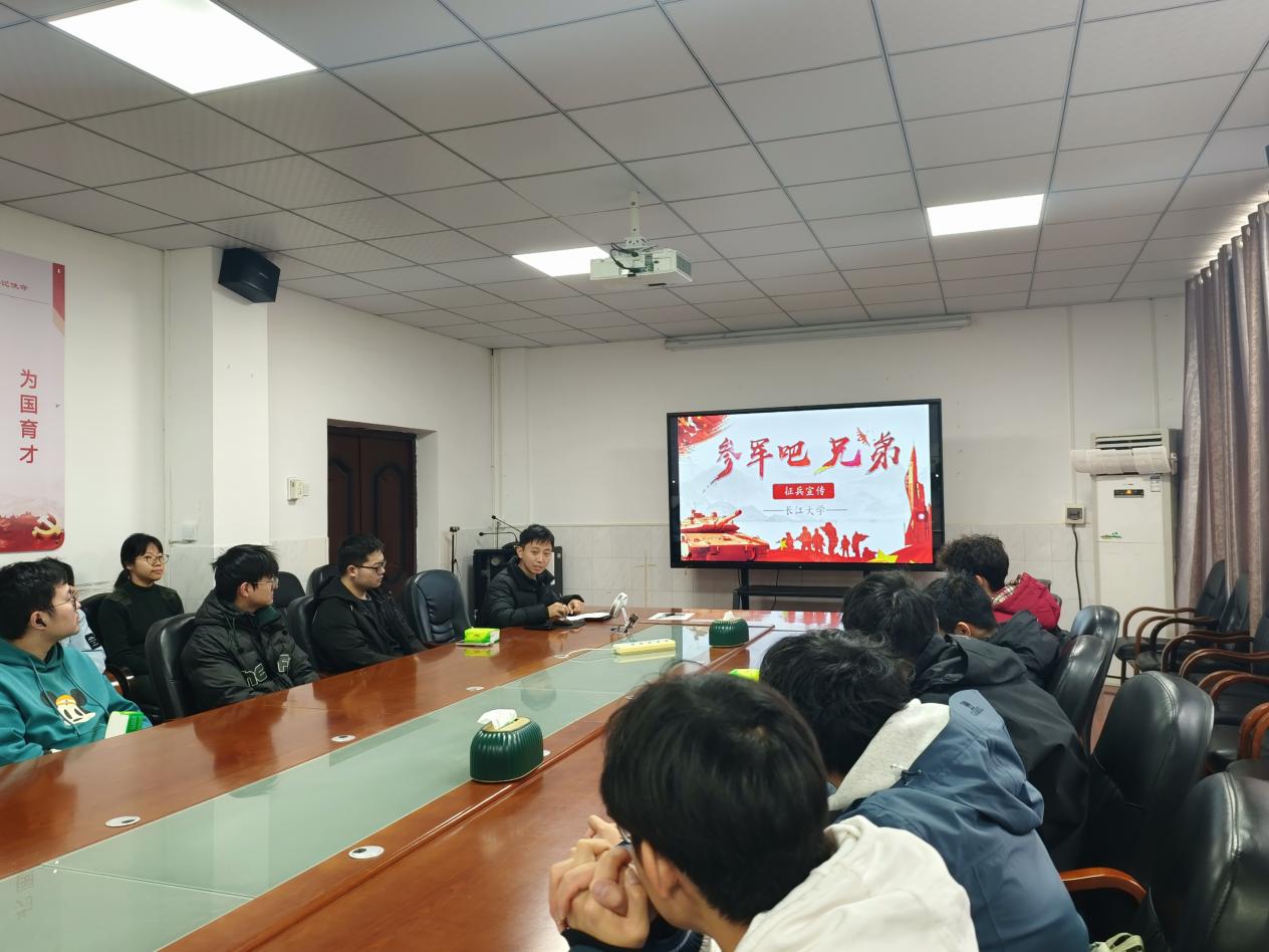 (通讯员章崇烁李航)国无防不立,民无防不安。为鼓励同学们积极参军入伍,做好2026年春季入伍征兵工作,球王会平台于2025年12月24日中午在1教217会议室开展了征兵宣讲活动。出席本次宣讲活动的有学院征兵就业专干章崇烁老师,退役士兵大学生窦笑爽及各班级代表。