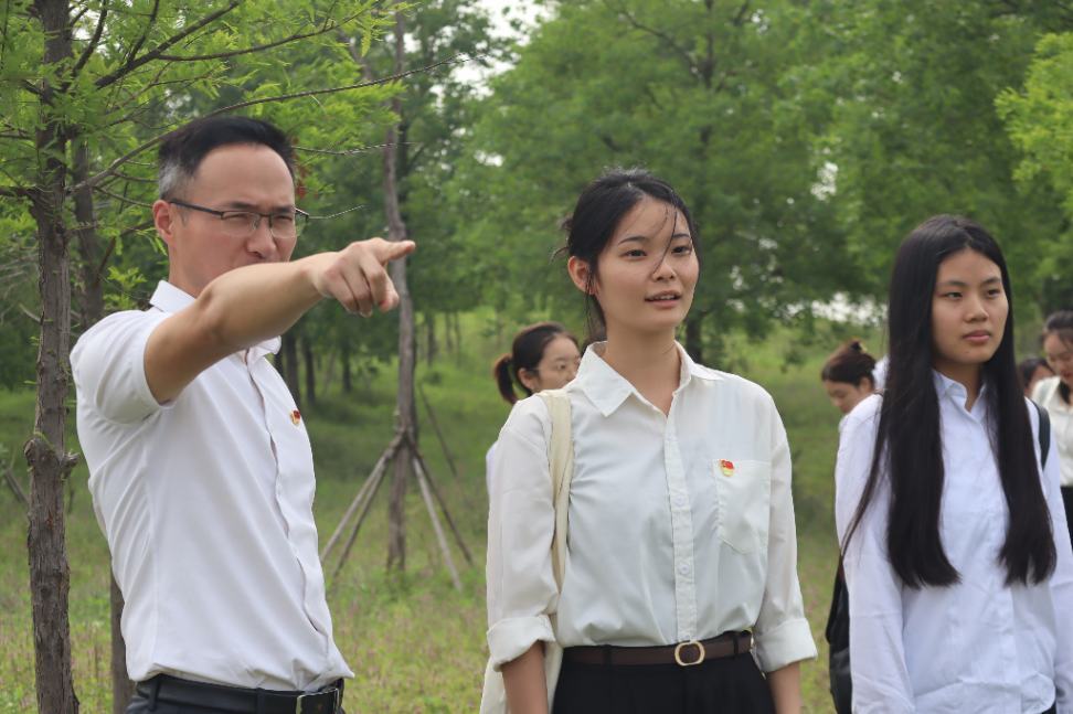 实践环节的湿地深处,200米外的麋鹿群正悠闲觅食、嬉水,边上还有两对雄鹿上演着“鹿王争霸”,俨然一幅和谐共生的生态画卷。学生党员们惊喜交加,他们还是第一次真切地感受“呦呦鹿鸣,食野之苹”。保护区周承志科长指着鹿群骄傲而又担忧地说:“保护区内麋鹿数量今年将突破3000头,种群繁殖状况良好,但这也给我们在疫病防控方面增加了很大的压力。”熊涛教授带领学生党员与技术员围站在观鹿台,就动物疫病防控展开“头脑风暴”,笔记本上密密麻麻记录着“生态廊道建设”“基因库优化”等专业建议。