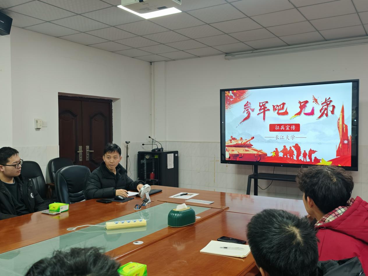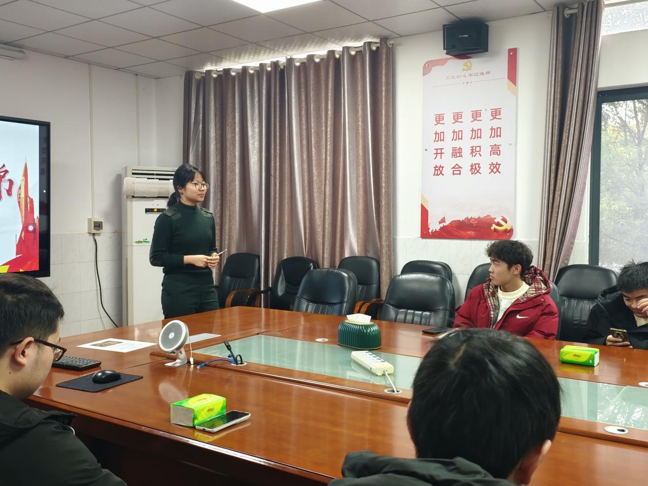 (通讯员章崇烁李航)国无防不立,民无防不安。为鼓励同学们积极参军入伍,做好2026年春季入伍征兵工作,球王会平台于2025年12月24日中午在1教217会议室开展了征兵宣讲活动。出席本次宣讲活动的有学院征兵就业专干章崇烁老师,退役士兵大学生窦笑爽及各班级代表。