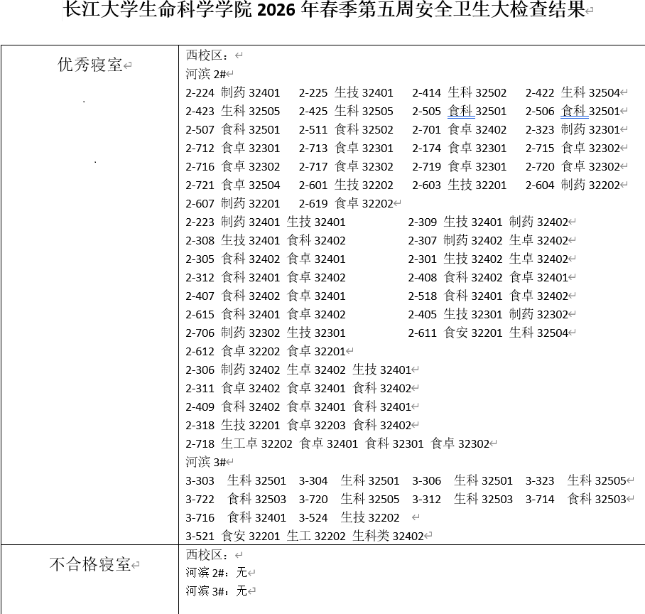 球王会平台2026年春季学期第五周卫生大检查结果汇总