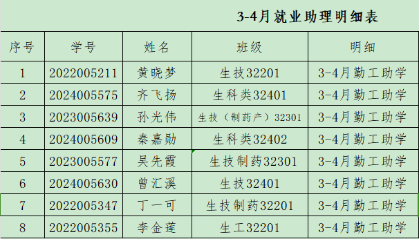 根据长江大学学生勤工助学管理办法,结合学生资助中心的相关要求,现将2026年3-4月勤工助学名单予以公示。如有异议,可以书面或来电方式向生科院学工办反映。 电话:0716-8066149 联系人:章老师 地址:河滨4102办公室 公示时间:2026年4月10日—2026年4月13日